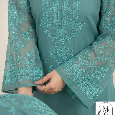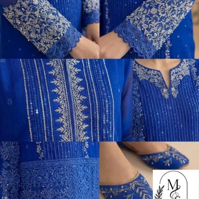 • Coordinated Footwear: The look is completed with matching embroidered flats, ensuring elegance from head to toe.